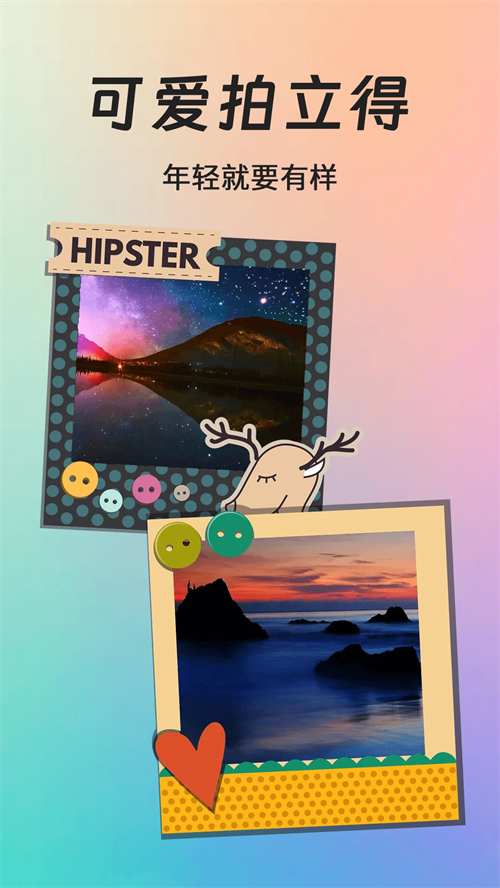 2、各种图片内容都能够在这里找到。超多滤镜贴纸,让你的手机秒变拍立得,体验更加多元有趣的拍摄内容。软件素材丰富,更新快速。