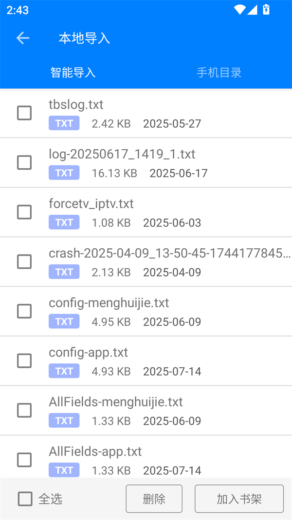 2、接下来我们可以通过书架功能来进行导入,从而将各种格式的文档导入到手机app里。