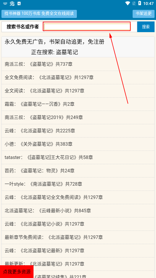 3、通过搜索功能我们可以马上寻找到海量的小说资源,然后从中挑选自己需要的资源。