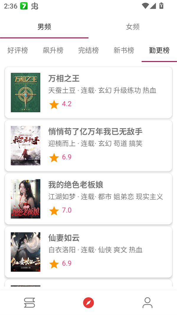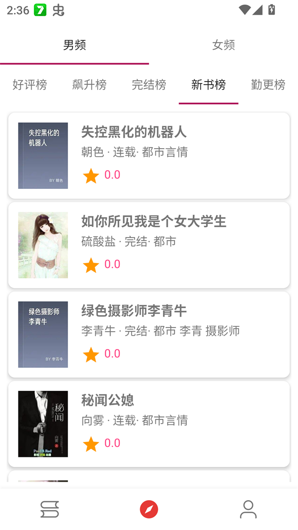 3、智能推荐:男女频道智能化推荐系统,根据用户阅读习惯推荐相应的书籍。