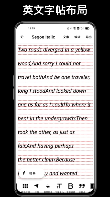 5、字体设置:支持各种字体样式的设置,调到你最舒适的状态,练字不应该将就。