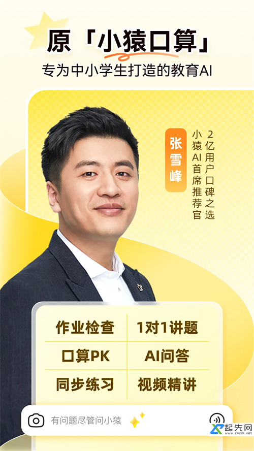 小猿AI免费版是一款专门为中小学生打造的教育AI,这款软件以AI大数据模型为基础,赋予用户最全面的在线辅导功能,为用户提供网课、智能练习、难题解析等多元化的智能教育服务,帮助学生系统性、高效率的完成学习闭环,轻松学习就找小猿AI。