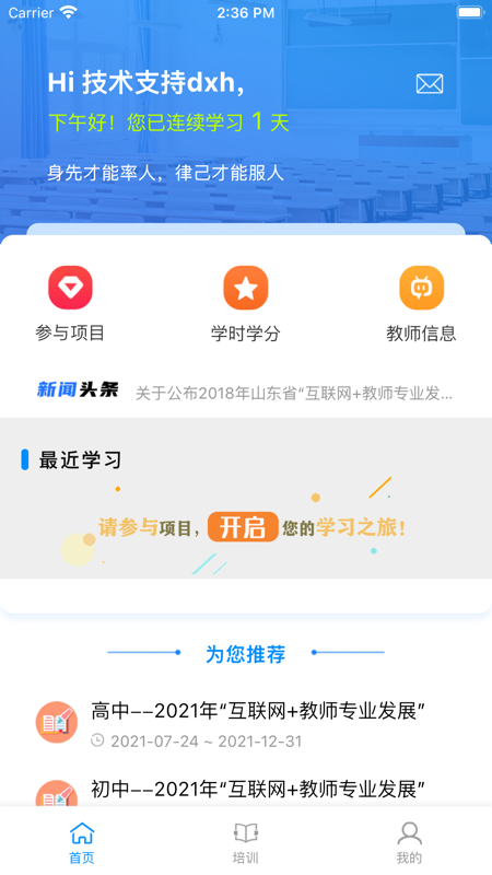 4、培训功能方便教师通过手机参与远程培训项目的课程学习,各种优质课程和线下专业培训讲座。