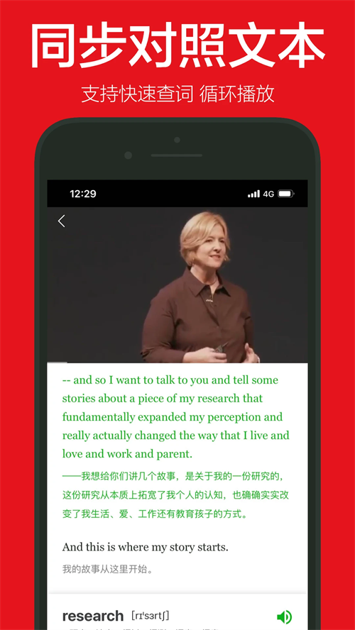 支持快速查词,循环播放。