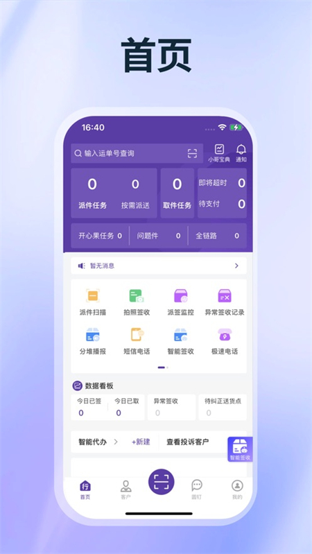 一键秒签、收件抢单、收派列表,智能路线规划。