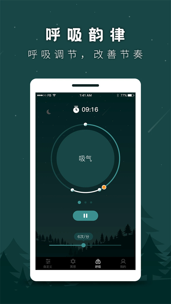 4、来到“呼吸”界面,可以跟随系统的呼吸帮助放松,调节身体状态。