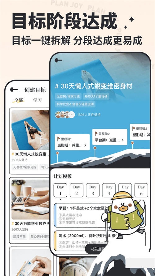 目标拆解:减肥、考证考试、自我提升…全场景目标皆可阶段式自动拆解,分段达成更易成。
