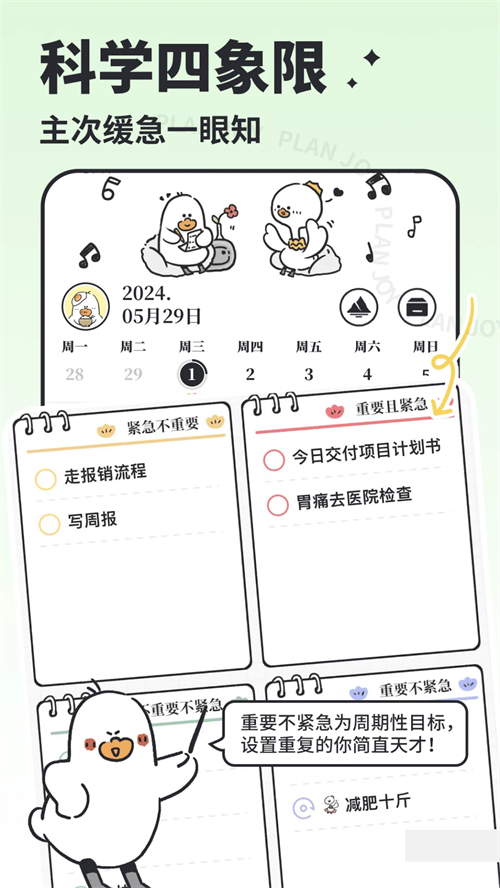 主次有序:四象限主任务样式明晰先后主次,并有单列表等适配你的习惯。