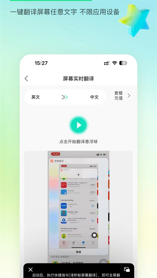 屏幕实时翻译:解决漫画翻译、游戏翻译、图片PDF翻译、外语课文翻译等翻译难题。
