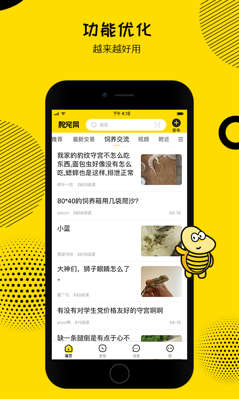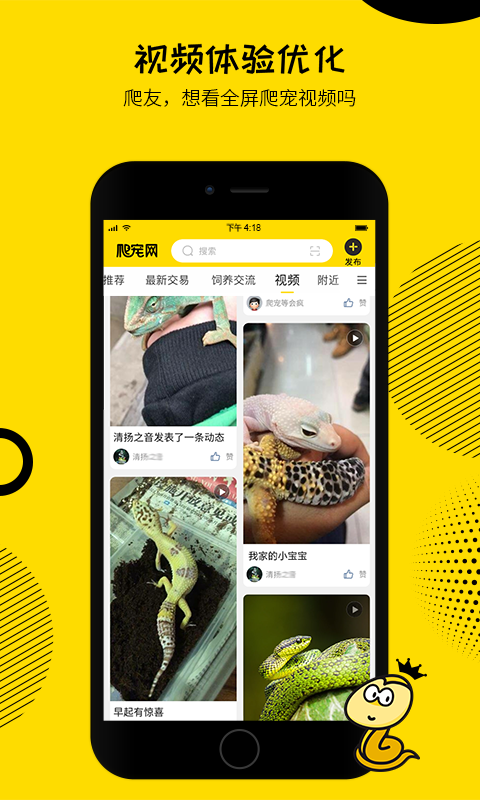 爬宠网官方版是一款专注于爬行动物领域的应用软件,为热爱爬宠的用户而打造,集资讯、交流、交易、科普于一体,涵盖龟、蛇、蜥蜴、节肢动物、两栖动物以及其他各种类型奇异宠物,用户可以在平台内发布爬行动物出售信息,也可在平台内观看他人出售爬行动物。