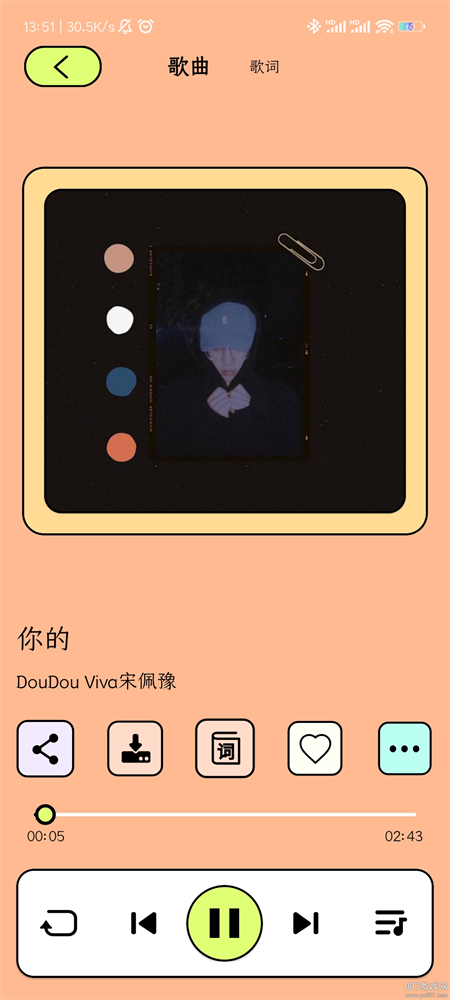 4、我们点击进入便可以播放了,不仅歌词完整而且专辑封面也相当清晰。