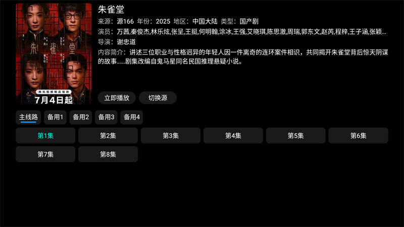 一影视TV电视盒子最新版不仅为我们的用户免费提供了海量的影视资源,而且我们还可以通过这款软件来选择多个渠道的视频源,让你可以快速切换。当然,你也可以通过一影视app官方正版下载2025年最新版来进行快速搜索,从而找到自己喜欢的影视。