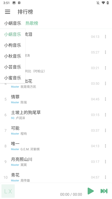 4、选择排行榜,这里有当前最热门的歌曲可以听。