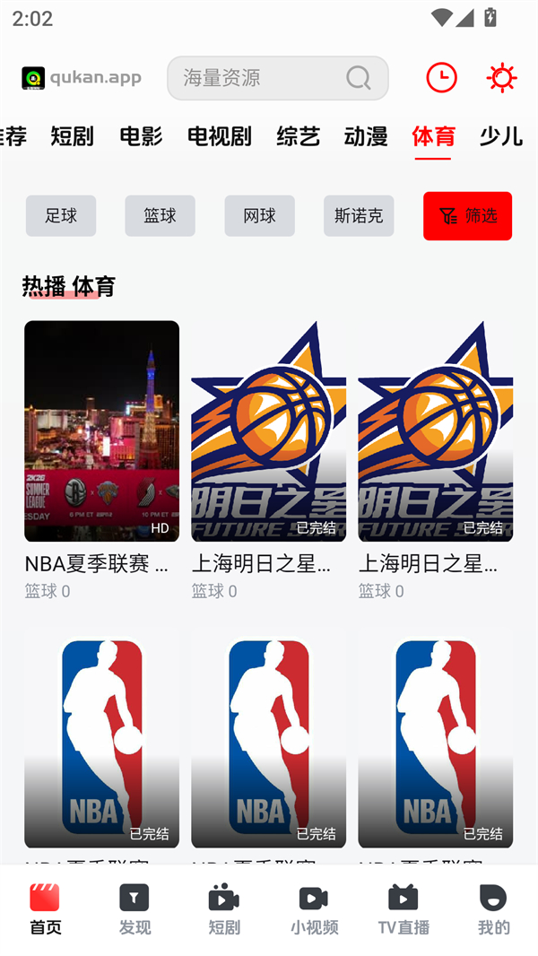 2、接下来我们可以选择短剧、电影、电视剧、综艺、动漫、体育等多种类型的影视资源。