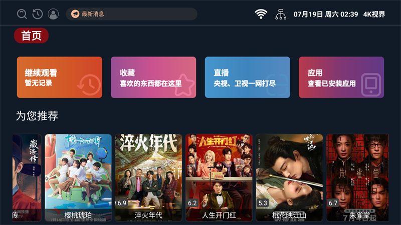 1、首先在开心电玩下载并安装4K视界解锁永久会员版,安装完成后打开app进入到主界面。