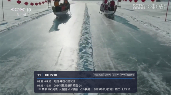 3、点击屏幕下方就可以查看当前时间和节目剩余时长。