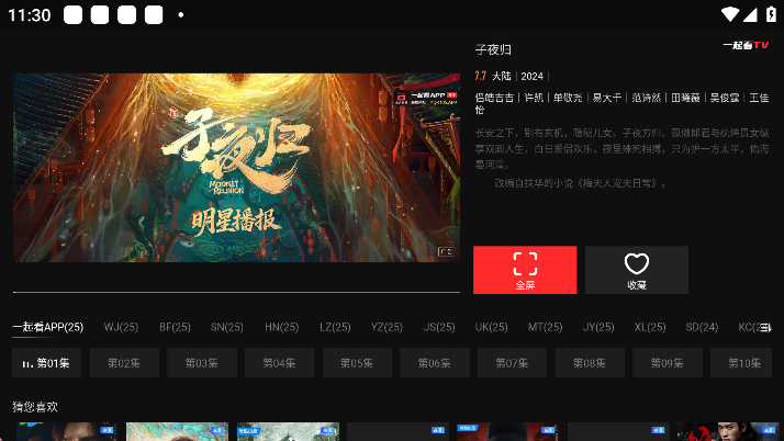 6、点击全屏,可以直接大屏追剧了。