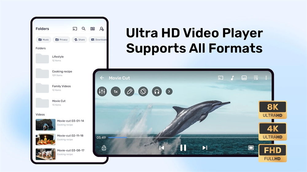 MX播放器官方版是一款非常经典的安卓本地视频播放软件,它采用多核心解码方式,几乎支持所有的视频播放格式,也支持硬件加速,从打开到播放整个过程都非常流畅,无论是8K、4K、FHD都可以轻松播放高画质内容,是一款十分全面的视频播放器。