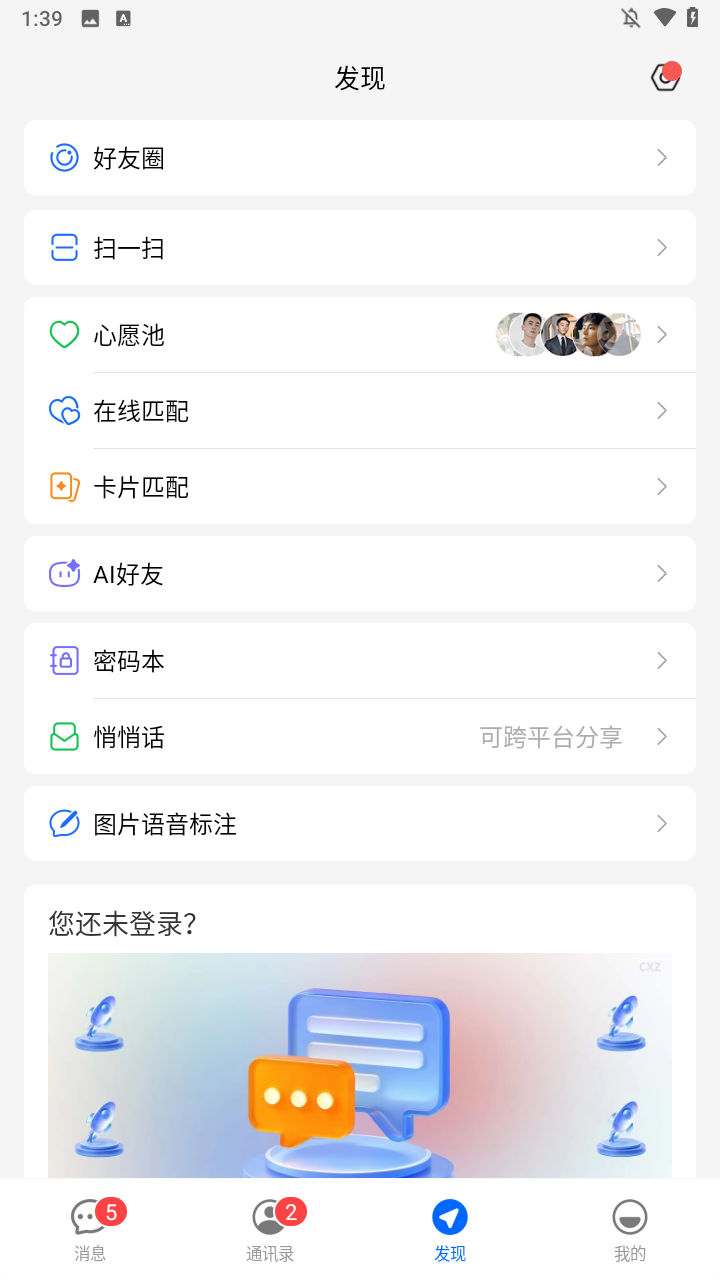 2、进入主页后可以看到跟普通的聊天软件页面差不多。