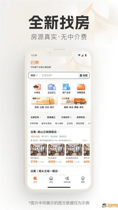 泊寓公寓官方版是一款高品质的年轻人租房平台,软件提供了最完善的租房流程,其中包含了看房、预约、签约、支付、报修等功能,软件采用人脸识别+电子合同进行签约,所有房间都采用智能家居锁,下单即可轻松入住。软件所有房源都经过严格审核,保证所有房源的真实性,在租好房子后平台也会提供相对于的售后服务,让大家租好房,放心租。