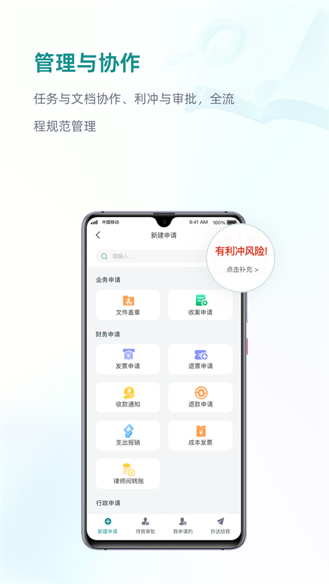 2、审批便捷,即时聊天,视频会议,团队协作更高效,合同全程电子化。