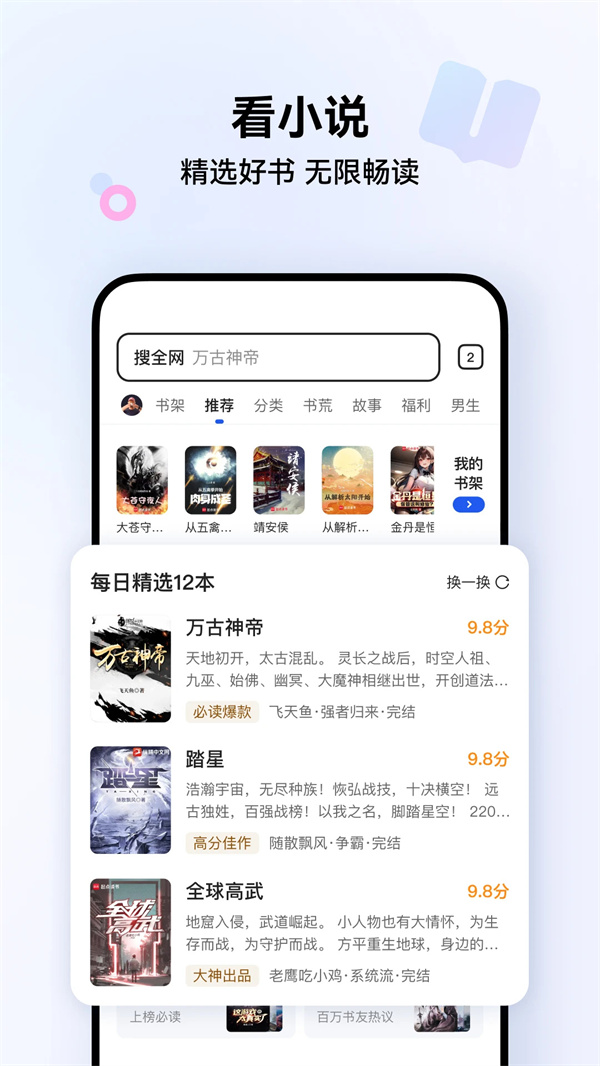 QQ浏览器软件还有着纯净式的小说阅读方式,用户可以在这里体验最简单的看小说,每天都会精选好书向你推荐,让用户可以在这里无限畅读各种类型的小说。