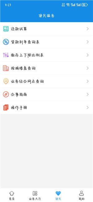 本模块包含公积金业务办事指南、APP线上操作手册、缴存上下限比例表、贷款利率调整表、按揭楼盘查询、业务经办网点查询等功能。