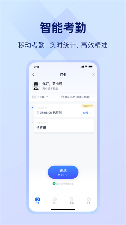 掌上薪福通打卡软件是一款由招商银行面对各大企业推出的多功能办公手机软件,软件将人事、财务、OA审批、考勤等多种功能结合,为企业提供一站式办公服务,员工可以使用软件进行考勤打卡、请假等申请,还能直接在软件上与同事进行更高效的沟通,建立群聊让协作效率大大提高,人事可以使用软件进行入职、转岗、个人档案等管理,十分便捷。