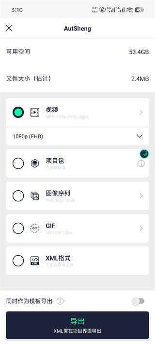 导出任何人都可以使用Alight Motion编辑的视频、GIF或项目包。