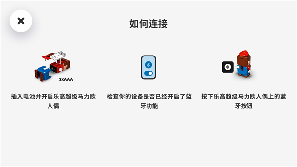 1、在应用程序与乐高马力欧(和/或乐高路易吉)之间建立连接。