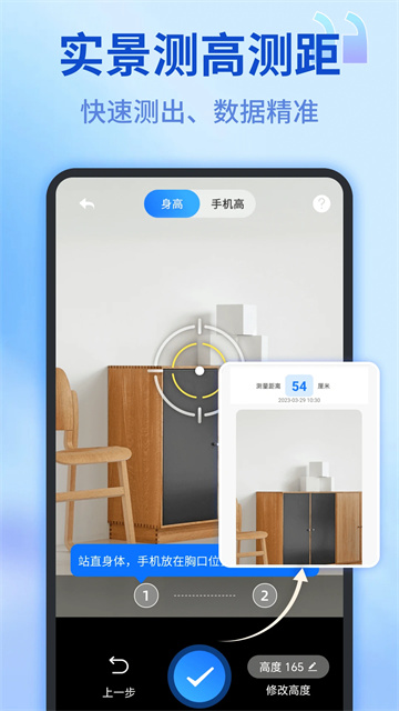 测距测量仪App是一款多功能手机测量工具,提供距离测量、高度测量、量角器、直尺、噪音仪与3D实时测量等功能。通过手机摄像头与传感器配合,它能够帮助用户快速判断物体的距离与高度,同时支持360°量角器与屏幕直尺,让手机瞬间变成随身工具包。测距测量仪适用于装修测量、家具摆放、户外高度测量、工地环境判断等场景,使用便捷、上手快、无需额外设备即可完成基础测量任务。