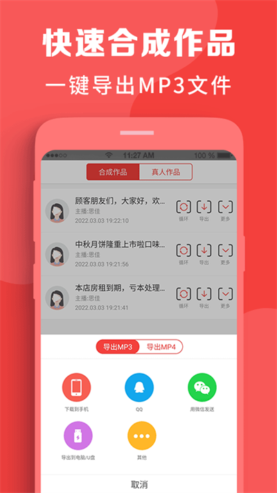 9、自有配音:等自媒体快速配音,适配剪映、快影等本地导入功能。