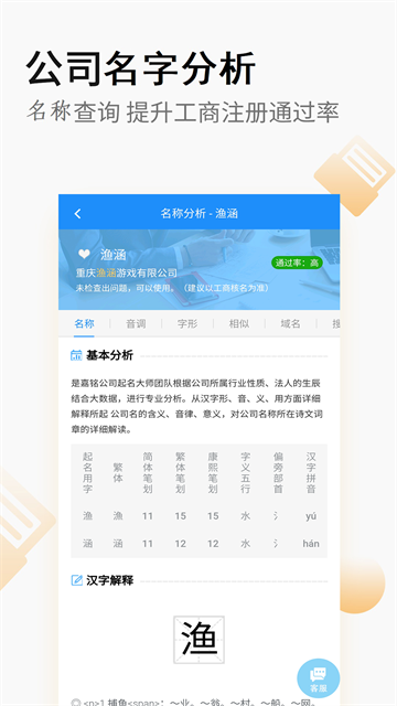 汉字笔划分析、字形分析、字义分析、音韵分析、音调分析、诗词寓意分析、名称相似分析、品牌相似分析、法人生辰分析、行业分析 – 每个名字我们都认真对待!