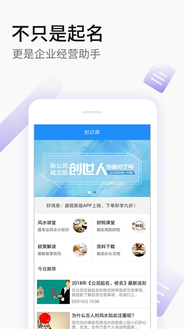 v1.7.0嘉铭公司起名取名app是一款专为创业者和企业主设计的智能起名工具,也可以叫做“公司起名app”,结合了传统文化、现代商业理念和科技手段,为用户提供了一站式的公司起名服务。同时,嘉铭公司起名取名app目前拥有丰富的数据库,包含了数百万个中文名字,涵盖了各行各业的词汇,用户可以根据自己的行业特点和经营理念,快速找到符合自己需求的名字。