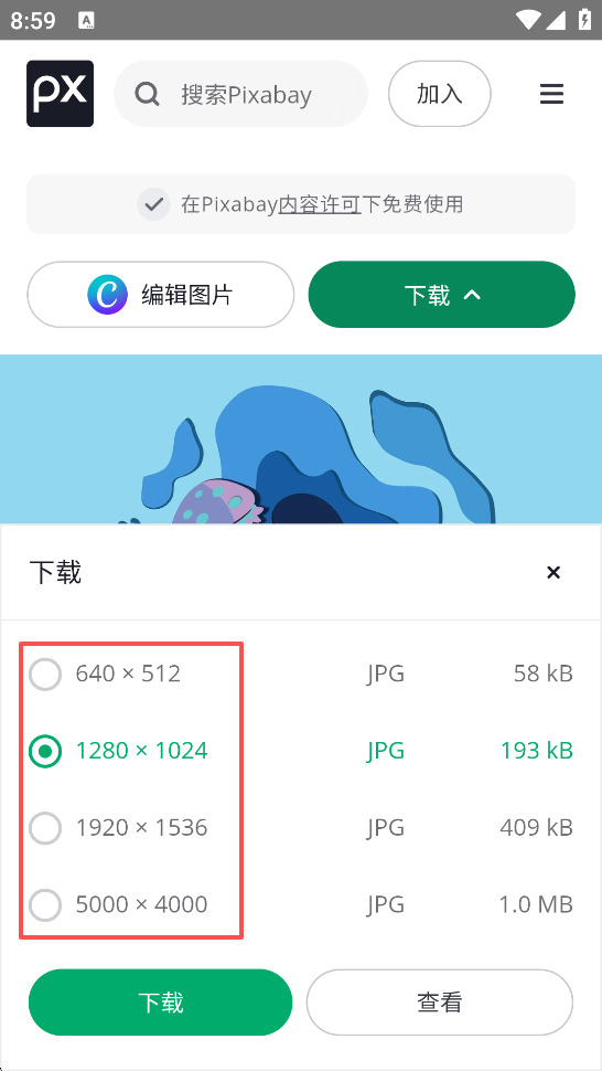 1、打开pixabay素材网App,搜索你需要的图片类型