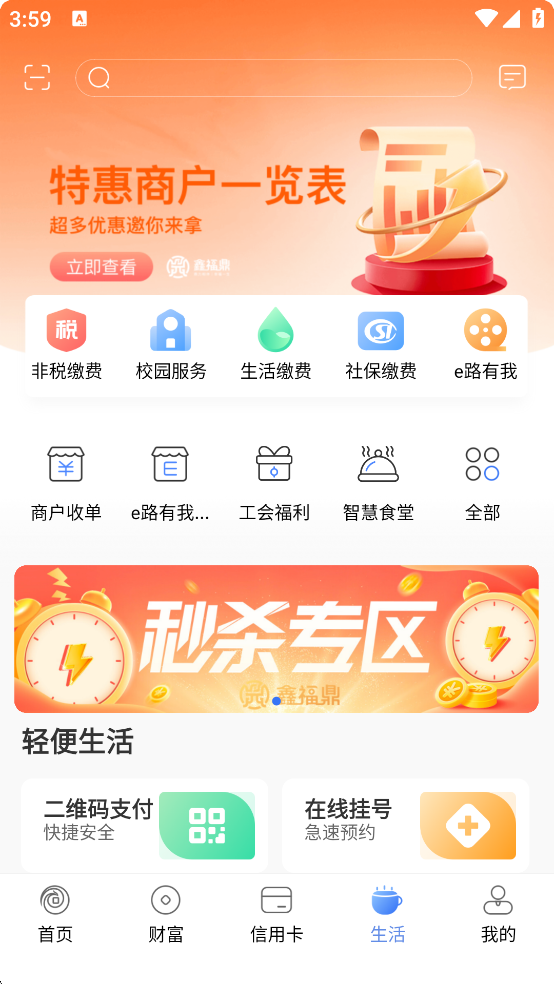 信用卡常用功能大整合,用卡优惠观影、五折美食等各类优惠活动实时享。