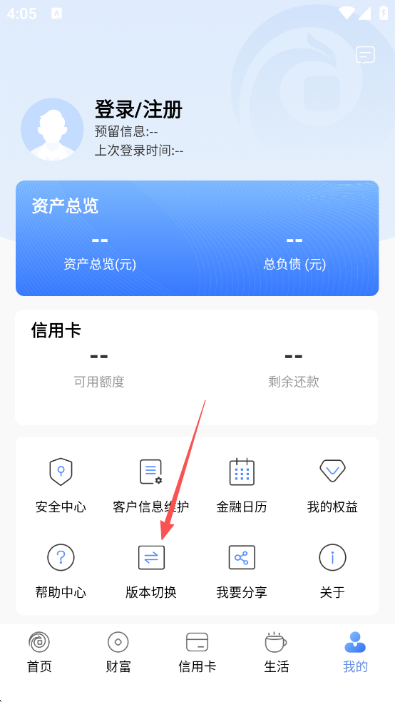 2、然后点击【版本切换】