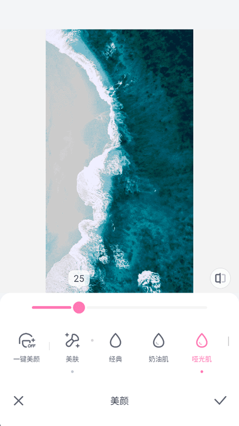 4、拖动进度条左右滑动,根据需求调整磨皮强度,实时预览效果。