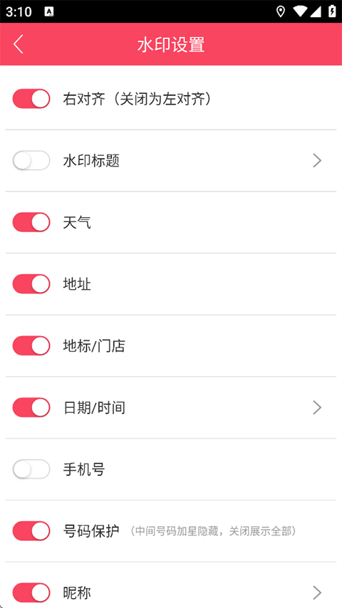 5、您可以自由调整需要显示/隐藏的水印项目;