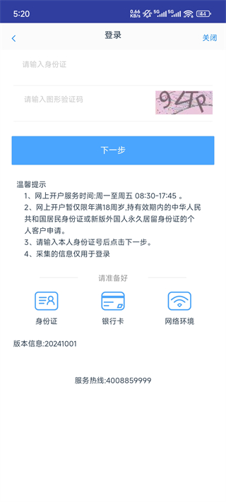 2、开户前需准备手机、身份证、银行卡、手写签名