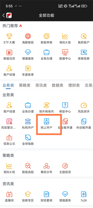 2、往下滑找到网上开户