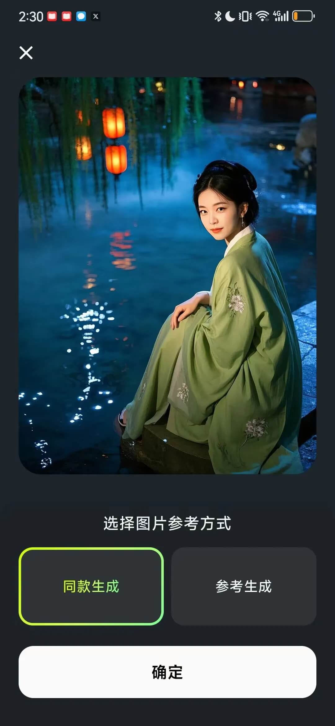 如下图,上传参考图后,选择同款生成,就是换成你的脸,选择参考生成,就是参考这张图片的元素和色彩