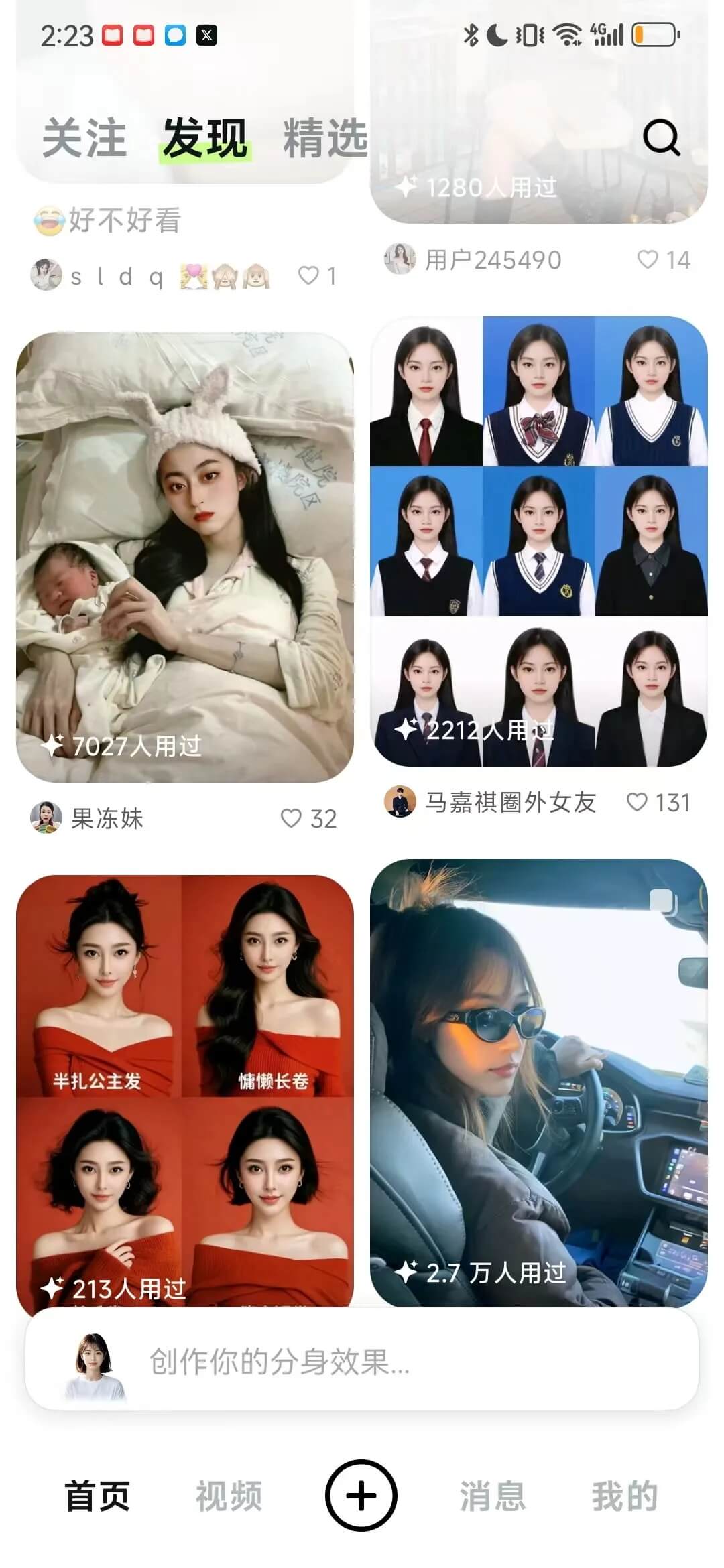 在精选页面,还能做视频,换装(非一模一样),特效,滤镜,改图,扩图,其实都挺基础的啦,不过很方面就是了,主打还是我们的那张脸嘛,大家自己试试就行