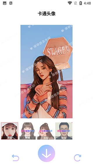 3、图片自动修改成了漫画风格,点击屏幕底部保存去除水印(注意,如果提示要订购会员,关闭即可,然后点击观看视频就可以保存图片了)。