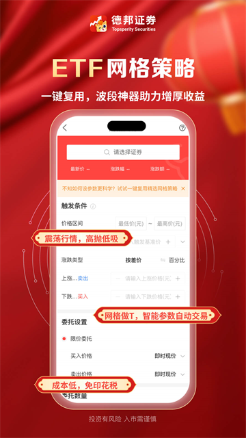 v6.08.002德邦证券app是一款专业的手机证券理财软件,集行情交易、理财商城、投顾投教、7x24h实时快讯等功能于一身,更有AI选股、诊股、盯盘、智能条件单等智能工具,解决投资者选股难,买卖难的投资难题!在这里你可以进行融资融券交易,包含担保品买卖、融资买入、融券卖出、还款(卖券还款、直接还款)、还券(买券还券、直接还券)、信用银证转账、信用业务查询等,使您的投资方式发生质的改变,使您的财富跨越牛熊市的局限。