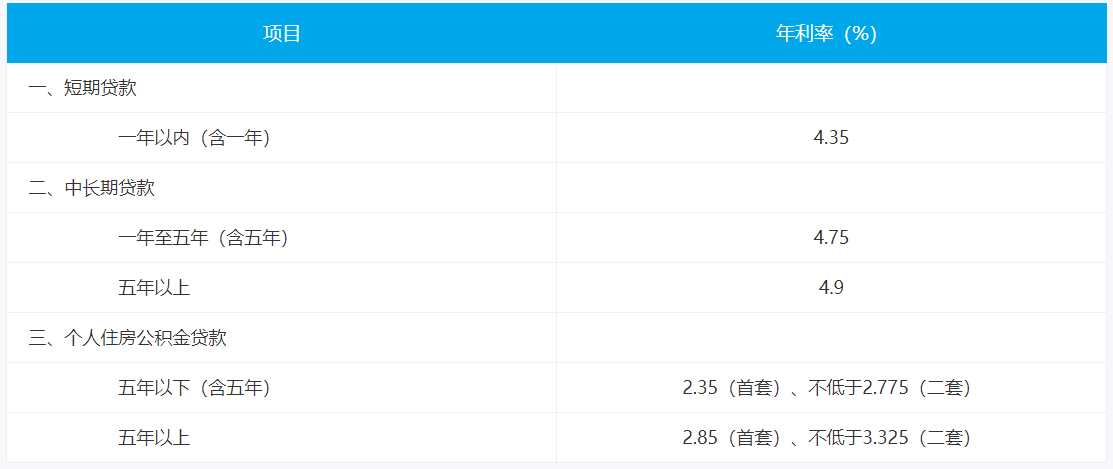 人民币贷款基准利率表