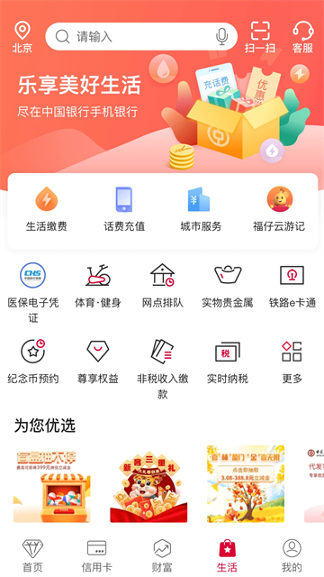 中国银行手机银行匠心打造“便民、富民、惠民、乐民”综合服务平台:推出六大客群专属服务,满足您多元化服务需求;提供六大王牌财富管理服务,全程陪伴您的财富旅程;升级美好生活平台,丰富生活服务供给;推出“福仔云游记”,趣味互动让您畅享美好生活。