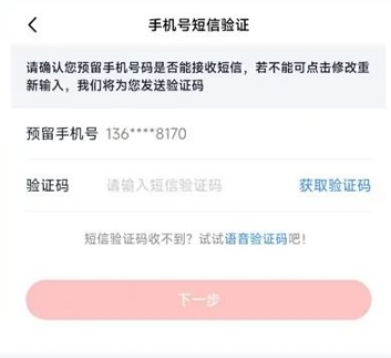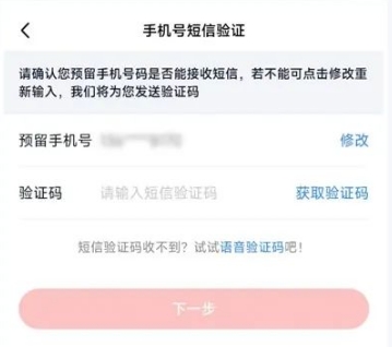 接收预留手机号验证码;