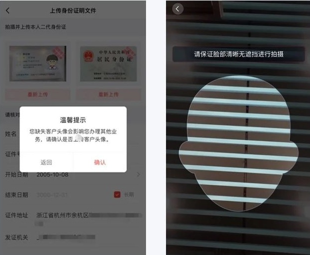 3.若系统检测到您缺失头像时,需请您拍摄头像上传