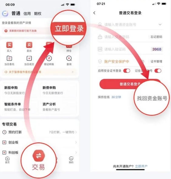 登录时忘记资金账号了?只需4步,帮您找回: